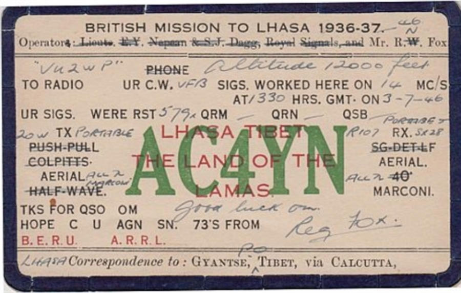 A Tibetan adventure, circa 1936-1937, told by AC4YN (G5YN)