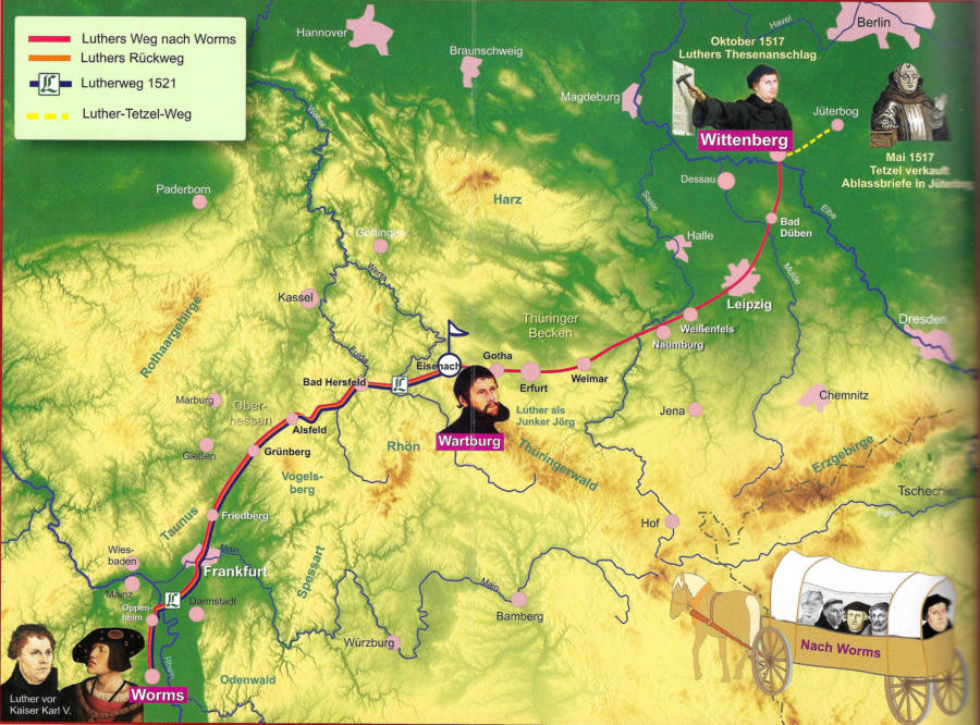 Duitsland. Zijn Pelgrimsroute, de Martin Lutherweg 1521, is ongeveer