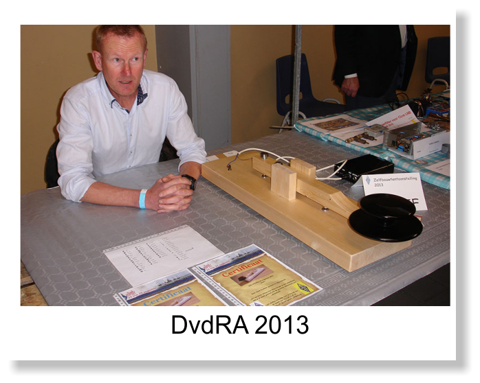 De grootste seinsleutel van Nederland..(een seinsleutel met een missie)Door Rens Joziasse, PA1IJF(Gepubliceerd in Electron van januari 2014)Hoe het allemaal begonIn het vroege voorjaar van 2013 kregen we de mogelijkheid om een stand te krijgen bij het SAIL Vlissingen evenement. Een mooie gelegenheid om de radiohobby te promoten bij het publiek. Radio en Nautiek gaan immers goed samen. Tijdens de voorbespreking kwam ter tafel welke promotiematerialen we wilden neerzetten in de stand en wat de publiekstrekker zou kunnen zijn. Een grote wasknijperseinsleutel werd genoemd. En als project voor de kleinsten het maken van een wasknijperseinsleutel. Of een soldeerprojectje.Mijn gedachte was dat je niet kunt aankomen met een wasknijperseinsleutel als er veel mooiere modellen zijn bedacht. Alleen moet het wat groter…. Zo kreeg ik idee om een grotere versie te maken van mijn KENT seinsleutel. Om de snelheid in het proces te houden besloot ik de grote sleutel niet van messing te maken maar van vurenhout. Een collega heeft alle onderdelen (de basis, de arm, en de 2 opstaande vlakken) verzorgd. Ikzelf heb de afwerking voor mijn rekening genomen. Dit gedeelte zat constructief snel in elkaar. Dank aan DAN, PA1FZH voor het gebruik van de kolomboor.Maar nu de grote zwarte knop nog. De knop uit een massief stuk hout draaien was geen optie. Het gewicht van de knop zou veel te zwaar worden voor de veer die de arm in balans moet houden.De plaatselijke rommelmarkt bood uitkomst. Daar vond ik een kunststof schaaltje met een mooi gevormd voetje. En de inventiviteit van de Walcherse zendamateur liet zien dat dit zeer geschikt was voor de zwarte knop. Zo werd de knop gevormd samen met twee schijven MDF. Na het samenlijmen volgden dagen van schuren- gronden-schuren-gronden-schuren-lakken-schuren-lakken en kreeg de knop zijn juiste vorm. Nu nog de trekveer op spanning brengen en de grootste seinsleutel van Nederland was gereed.De basis van de sleutel heeft een afmeting van 80x26cm en de grote zwarte knop heeft een doorsnede van 20cm. De sleutel was net op tijd klaar voor het SAIL Vlissingen evenement.Tijdens de SAIL hadden we redelijke aanloop in onze stand. Ook kwamen de mensen langs die even daarvoor het station PA6SAIL hadden gehoord of gewerkt. De seinsleutel had grote aantrekkingskracht op de bezoekers en zeker de jeugd. Om de morsevaardigheid van de jeugd te testen had ik een kort spel in elkaar gezet. Naast de seinsleutel lag een papier met het morse alfabet. Na een kleine uitleg over morse waren zij in staat hun naam te seinen met de grootste seinsleutel van Nederland. Dit werd beloond met een heus certificaat dat op naam werd uitgeschreven.We kregen ook bezoek van het bestuur van de Stichting Behoud van de AMS ms Bernisse. Zij waren met de ms Bernisse ook te gast op het SAIL evenement. Zeer enthousiast waren zij over de VERON/VRZA stand en de grootste seinsleutel van Nederland. Dit was niet tegen dovemansoren gezegd.Promotie tijdens de Dag voor de Radio Amateur.Om de sleutel en haar missie te promoten heb ik een standje mogen bemannen tijdens de DvdRA op de zelfbouwtentoonstelling. Honderden mensen hebben de grootste seinsleutel van Nederland gezien en ik heb vele calls voorbij horen komen van amateurs die hun naam ermee hebben geseind. Vele glimlachen waren te zien en veel lovende woorden en thumbs up’s. Tientallen malen is de sleutel op de foto gezet. Naast de calls waren er vele gesprekken en mooie verhalen. Dit was een heel mooie positieve ervaring.Voor meer informatie zie [1] en [2].De missie.En zo is het balletje beginnen te rollen.Het zou jammer zijn als de seinsleutel in een grote doos verdwijnt tot ons volgende afdelingsevenement. Beter zou het zijn als andere VERON/ VRZA afdelingen de sleutel kunnen inzetten voor de promotie van de radiohobby. Ik heb de afgelopen jaargang van Electron eens doorgenomen en tel zeker 15 evenementen die door de afdelingen worden georganiseerd.Ik wil de sleutel beschikbaar stellen voor andere VERON/ VRZA afdelingen. Voor het gebruik van de seinsleutel vraag ik een kleine vergoeding.Walk for SophiaNu weet ik dat Erik, PD7M en Wino, PA0ABM zich inzetten voor een goed doel, nl. het Sophia kinderziekenhuis in Rotterdam.