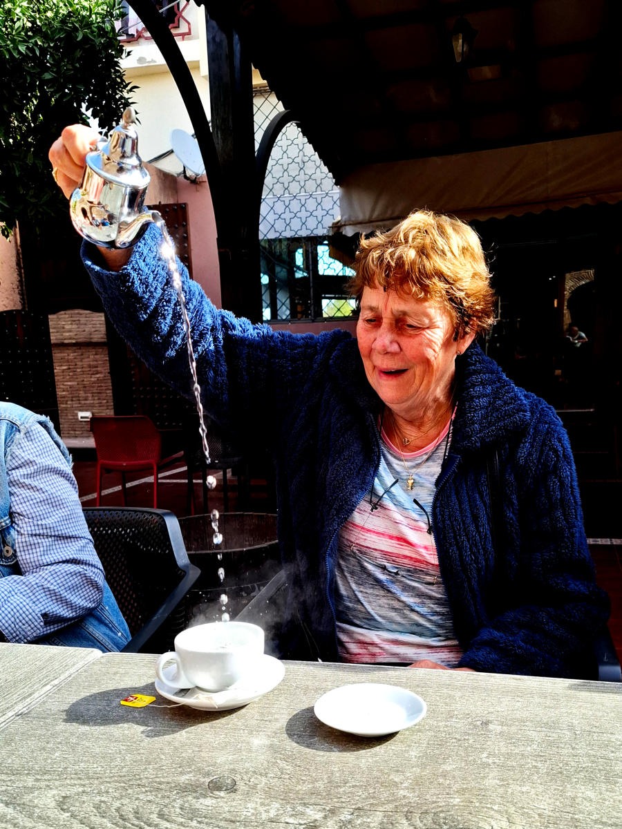 Meknès, een van de vier koningssteden rn is de vijfde grootste stad van Marokko De stad straalt een rustige grandeur uit te midden van zijn oude stadsmuren en historische monumenten. Het is er heel wat rustiger dan in het drukker Marrakesh. Het centrum van Meknès staat op de Unesco Werelderfgoedlijst.Eind 9e of begin 10e eeuw vestigde een nomadische berberstam, Miknasa, zich in het gebied, daarna waren het de Almoraviden, de Almohaden, de Meriniden, de Wattasiden en de Saadi, die het voor het zeggen hadden. Maar de grootste verandering vond plaats eind 17e eeuw toen Ismail ibn Sharif (niet onze Ismail) de cepter zwaaide. Ismail werd Sultan Moulay Ismail toen zijn broer Moulay ar Rashid van zijn paard donderde en overleed. Naar het schijnt had Ismail ibn Sharif 83 broers en half-broers. Iedereen die het niet eens was met zijn benoeming liet hij vermoorden. Onder zijn leiderschap wist hij de Ottomanen buiten Marokko te houden en bracht hij de berberbevolking van de Altlas onder bewind van een staat die we nu Marokko noemen. Moulay Ismail maakte van Meknes zijn koningsstad en liet op zeer grote schaal dure mooie bouwwerken verschijnen in zijn stad. helaas zijn veel van deze juweeltjes verwoest door een aardbeving in 1755.Sultan Moulay Ismail heeft een discutabele reputatie. Zo staat hij te boek als een bloeddorstige en wrede heerser, omdat hij volgens de overlevering eens de muren van de stad Meknès vol hing met tienduizend afgehakte hoofden van zijn tegenstanders. Hij staat in het Guinness Book of Records vermeld als de man die de meeste kinderen ooit heeft verwekt. Naar het schijnt had hij ruim 500 concubines en had hij maar liefst 1024 kinderen.Genoeg over de wrede Sultan. Tijdens het ontbijt in hotel le Musee werd pianospel via een TV gepresenteerd. De koffers stonden al geparkeerd bij de receptie, bewaakt door de hotel-eigenaar. Op weg naar Meknes ging een lijst rond waarin je een kruisje kon zetten bij de lunch die je graag wou hebben. De keuzes van de groep werd daarna doorgestuurd naar her het restaurant zodat er geen lange wachttijden zouden ontstaan. Dat systeem werkte, zoals later bleek, prima. Een goed idee van onze moederkloek.De eerste stop in koningsstad nummer twee. Meknes was voor de koffie (of thee of cola). Anneke, die had gedacht dat Richard en ik twee homo’s waren, wist precies hoe je thee moest inschenken. Gelukkig was de thee nog niet bevroren na een reis van een meter vanuit de pot naar het theekopje.Achter me was een deur zichtbaar. De patronen in de bewerkte deur gaven alvast een voorproefje op de mooie deuren die we nog zouden zien. Ik had geen wandelingen gepland in Meknes en Volubilis. Ik denk dat we gaan wandelen met de hele groep. We logeren de komende twee nachten in Fez, daar hebben we onze eerste vrije dag en daar heb ik zelf een dagwandeling uitgezet. Na de koffie was de gids nog niet verschenen, dus begon de toer door de stad zonder gids. De eerste stop was een kijkje bij de Bab el Khemis, een van de prachtige stadspoorten van Meknes. Daar was de gids ook niet, en zelfs bij een derde plek waar we éffe’ mochten kijken was de gids nergens waarneembaar. Waar we naar keken bij die derde plek weet ik niet meer, ik vond aan die plek trouwens niks aan. (Haras de Meknes?)Bingo. Op plek vier, de toegangspoort tot het mausoleum van Moulay Ismail stond de gids op ons te wachten. Een vrouwelijk lid van het Meknes toeristengilde. De entree tot het mausoleum was solide en mooi. In de grote deuer waren twee kleine deurtjes aangebracht waardoor je naar binnen kon. Dat deden we dan ook natuurlijk, de gids en entree hadden we al betaald aan Mirjan.Het is prachtig in het mausoleum. Moulay Ismail had goed voor zijn necrologie gezorgd. Overal trapjes, belegd met allerlei soortoen mozaïek. Oodelen van de muren waren met mozaïek versierd, zelfs de fonteinen in het mausoleum. En wat je zeker niet moest vergen was omhoog te kijken. Niet alles was versierd met die steentjes. Het verhaal dat de gids vertelde heb ik maar laten gaan. Ik was te druk bezig met foto’s maken.Na het mausoleum van de Almachige Moulay viel ons een stadswandeling te beurt. Door de kasbah. Wat al direct opviel was de tamelijke rust in de steegjes. Veel minder toeristen als in Rabat of de andere koningssteden die we nog kregen te zien. Soms kon ik, zonder te wachten, foto’s zonder toeristen maken. Je moest wel oppassen dat die niet door brommers ondersteboven gereden werd. Wat je wel overal zag waren poezen. Van allerlei soort. zelfs poezen met een baard. (Ik lieg niet hoor). De kasbah was een plezier om door te lopen en daar (waar het mocht) foto’s te maken. Behalve de vele kleurigige verkoopwinkeltjes van anderhalve meter breed kwam je ook de winkeltjes (van dezelfde afmetingen) tegen van de slager, de bakker, de kleermaker of de ‘open’ winkel van de houtbewerker tegen. Teveel soorten winkeltjes om ze allemaal op te noemen. Buiten de kasbah konden de luie mensen onder ons (gelukkig niemand) een één PK voertuig huren voor een rondritje door de stad. Even later werden we afgeleverd op Place el Hedime. Gelukkig weer niet zo druk zodat we een topattractie van Meknes, de Bab Mansour rusig konden bekijken. Ik kon zelfs een foto van deze poort maken waarop ook een politieman te zien is. Fout natuurlijk, want dat mag niet in Marokko. Ook geen miltairen of gendarmes, daar waren we voor gewaarschuwd door Mirjan. Wat dat kon wel eens het einde van ‘Marokko hoogtepunten’ betekenen, en het begin van ‘Marokko dieptepunten’.Op het plein, dat ten tijde van ‘Heer’ Ismail gebruikt werd om gestolen goed uit Volubilis op te slaan voor eigen Meknesse doeleinden, waren slangenbezweerders bezig om ons zover te krijgen dat we van hun foto’s maakten. Niet doen had onze moederkloek gezegd, dan moet je betalen. Dus geen foto’s van die lui maar wel van de Soukh (of is het Souq, of Soek?)Lees verder op pagina Volubilis
