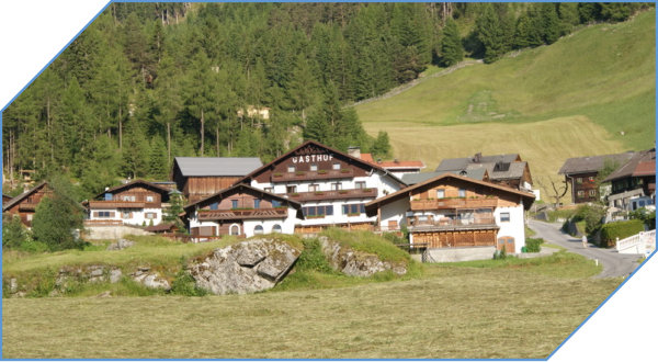 gasthof ligt in het dorpje Köfels, 2 km ten zuidoosten van Umhausen, en om daar te komen moest
