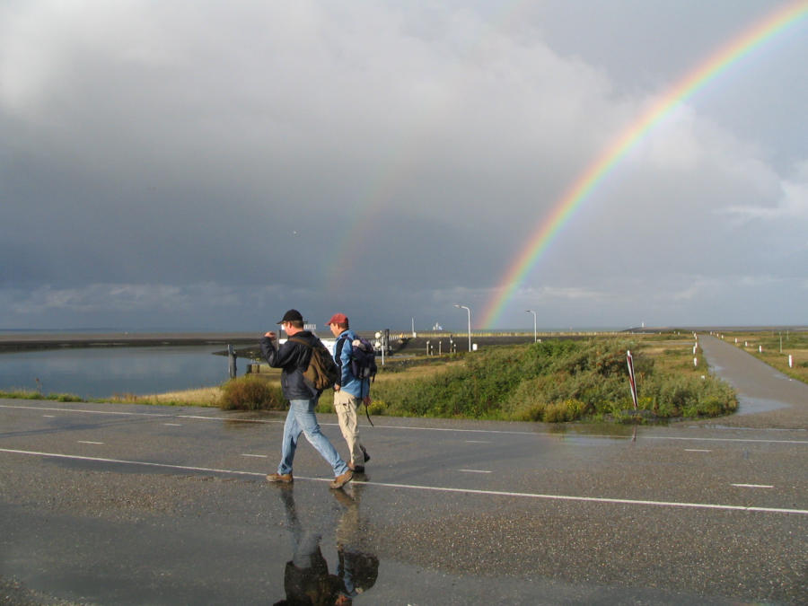beelden boven de Noordzee. Binnen de regenboog was de