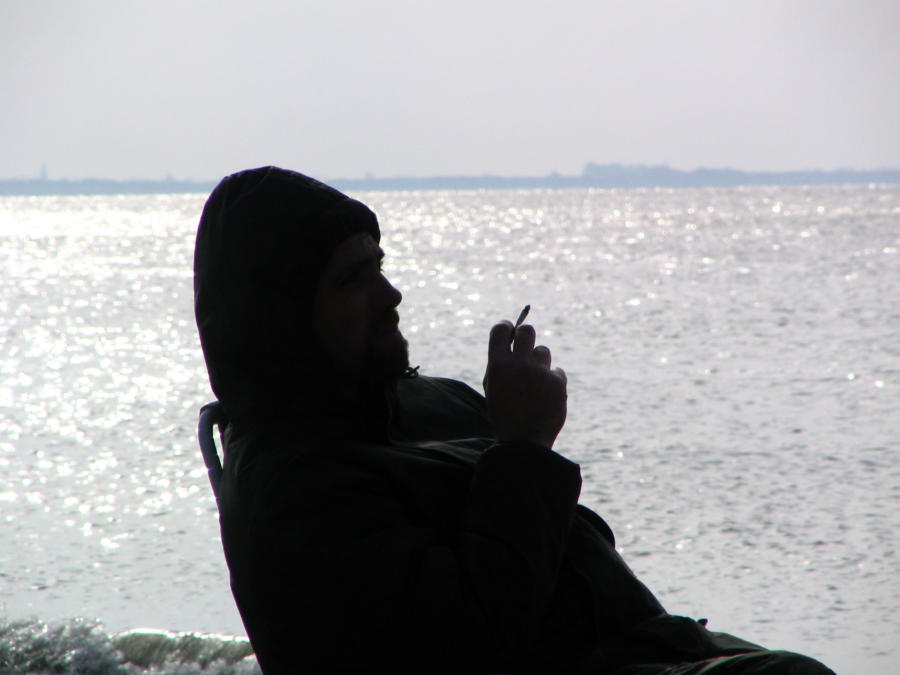 een paar foto's (met tegenlicht) van twee vissers te maken.