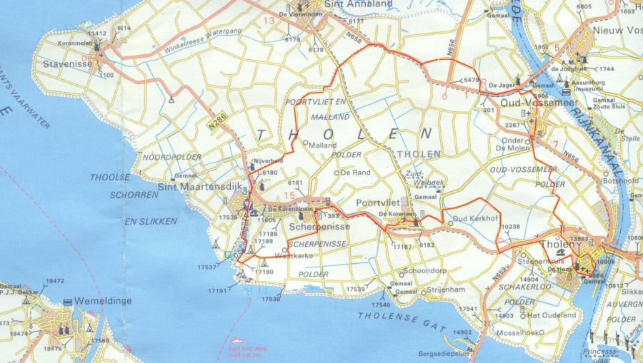 maar 1.9 km toto Sint Annaland, maar dit dorp was niet (net als Stavenisse) in de 40 km route