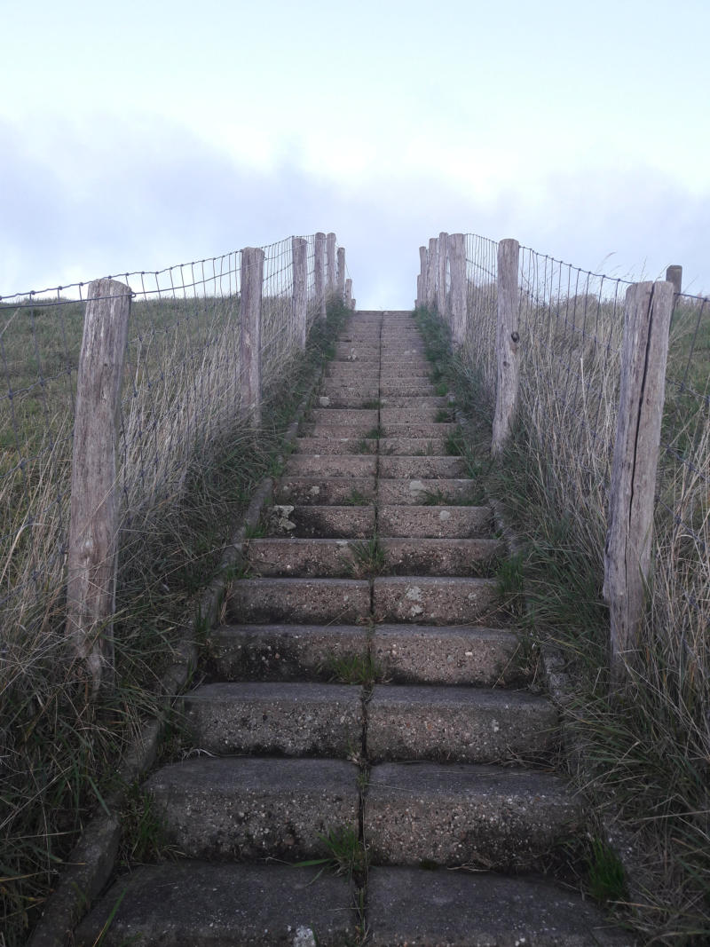 Vlak voordat ik de trappen oploop om aan de andere kant van de dijk van de Oosterschelde te