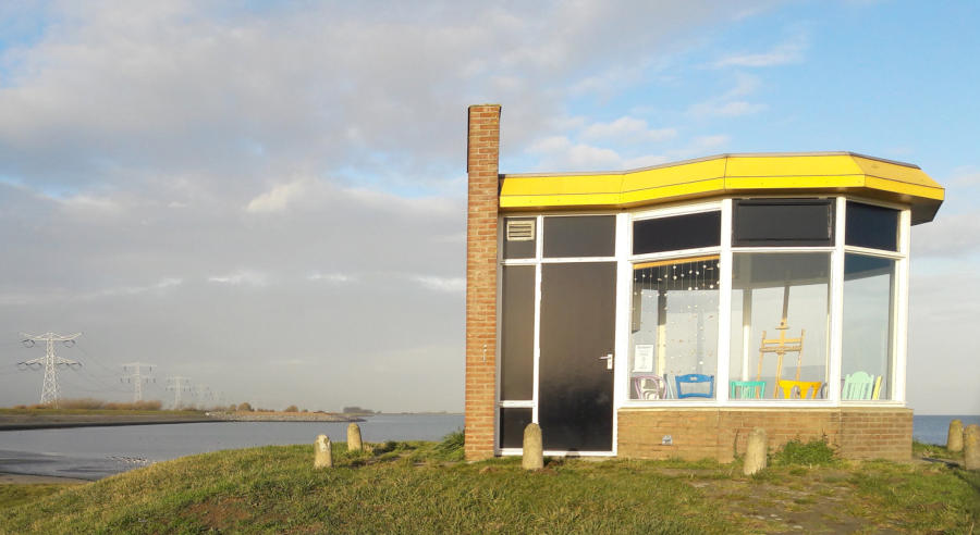 Vijftig meter verder heb ik weer goeie zin. Ik zie het ‘Praothuus’ op het strandje van Krabbendijke