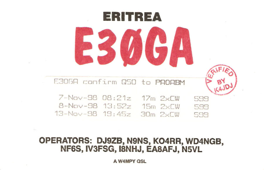 ja, de QSL manager van E30GA is K4JDJ, 556 Babbtown