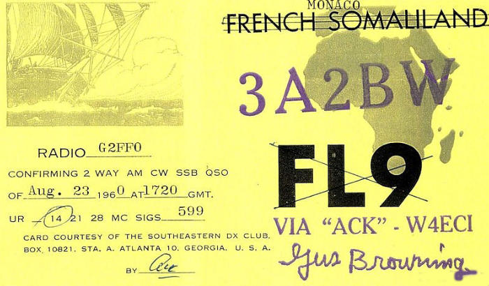 geen datums wanneer Gus ergens QRV was. Oude QSL kaarten leveren gelukkig vaak een datum,