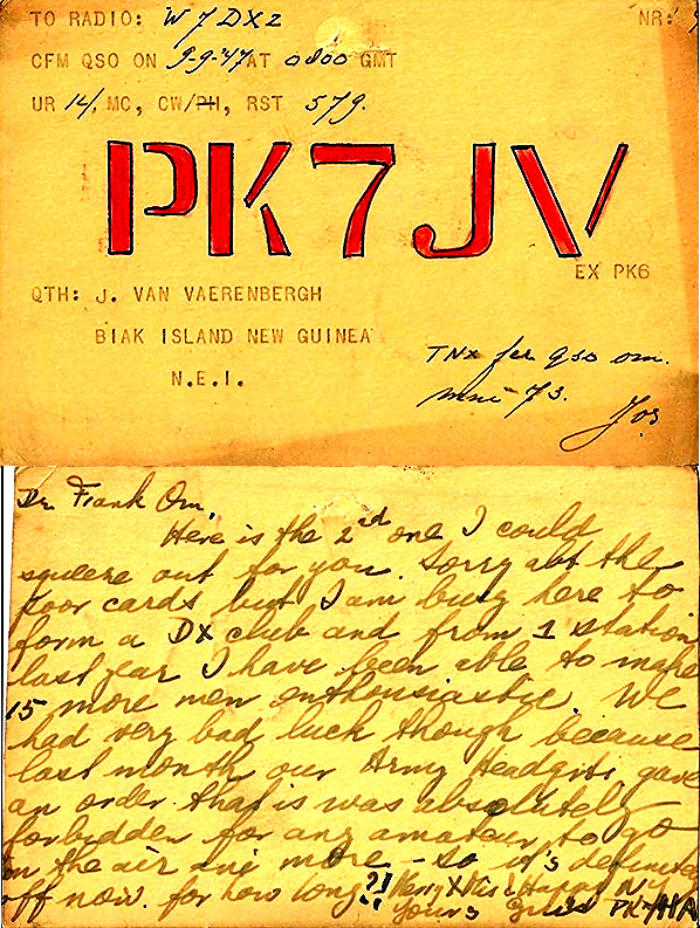 PK4DA was eind 40 begin 50 van de vorige eeuw QRV vanaf Sumatra De eerste keer dat PK4DA wordt gemeld is in CQ van juni 1946. In december 1954 is in CQ te lezen dat PK4DA weer in Sumatra was voor een verblijf van 2 jaar.Helaas was het onmogelijk QRV te zijn omdat Indonesië op de banned list stond van 1950 tot 1967. De operator Arie Bles was een DXer in hart en nieren.Arie streek uiteindelijk neer in Australië en was daar QRV als VK2AVA. Arie overleed in 2002. .