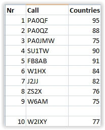 Countries:In januari 1938 stond een aangepaste ARRL Countries Lijst in QST.De lijst van 1937 was een aanzet om tot een “volmaakte” Countries Lijst te komen, en de ARRL was ingenomen met de goede respons op deze lijst. Natuurlijk zaten er fouten in de lijst en het was dus logisch dat de lijst aangepast moest worden.Prefix wijzigingen van Amerikaanse eilandenDe F.C.C. wijzigde de prefixen van de Amerikaanse overzeese gebieden. Er was teveel verwarring bij het toekennen van roepletters voor deze gebieden. En natuurlijk werden deze nieuwe prefixen gepubliceerd in de QST van december 1938 (bladzijde 49). Hier zijn de toegewezen prefixen.K4Puerto RicoKB4Virgin IslandsK5Canal ZoneK6Territory of HawaiiKAPhilippine IslandsKB6GuamKC6Wake groupKD6Midway IslandsKE6Johnston IslandKF6Baker Island, Howland Island, Am. Phoenix IslandsKG6Jarvis Island, Palmyra groupKH6America SamoaK7Alaska (including Pribilof Islands)Overleg met de DX-wereld, en het ingezonden commentaar, tezamen met opmerkingen van geografische aard, en de gewijzigde prefixen van de Amerikaanse eilanden werden in de lijst verwerkt, en deze lijst werd gepubliceerd in het januari nummer van 1938. Een aantal landen in deze lijst had nog geen Prefix. (49 stuks). Er was blijkbaar nog geen zendamateur vanuit dit land actief geweest. De lijst telde in totaal 248 landen. En natuurlijk vroeg de ARRL weer om op of aanmerkingen op deze aangepaste DXCC lijst.Ook een aantal landen verdween van de lijst, zoals b.v. Oostenrijk . Oostenrijk werd dus een deleted country, maar telde volgens artikel nr 6 natuurlijk nog steeds voor het DXCC. Het QSO moest dan wel gemaakt zijn in de periode voor december 1938. De wereld was aan het veranderen.DXCC ledenIn juni 1938 van QST werden 25 stations genoemd die 100 of meer landen bevestigd hadden, en dus lid werden van de DX Century Club. En voor de eerste keer verschenen ook calls van Nederlanders in de aspiranten lijst van het DXCC. Twee stuks om precies te zijn, namelijk PA0XF (Ed Kerker) met 97 bevestigde landen, en PA0QF (P. Bouwman) met 94 bevestigde landen. Op dezelfde lijst verscheen ook een call van een Amerikaan die na de tweede wereldoorlog een “beroemde” globetrotter zou worden. Dat was Gus Browning, W4BPD, die al 79 bevestigde landen had.In juli 1938 was het haast zover, PA0XF had nu 99 bevestigde landen. En PA0QZ werd de derde Nederlander die in de aspiranten lijst verscheen met 85 landen.In augustus 1938 kwam er nog een Nederlander bij, PA0JMW, met 75 bevestigde landen.De lijst van september 1938 toonde PA0XF, Ed in het rijtje van volwaardige DX Century Club leden. PA0XF, Ed had nummer 43 gekregen, en werd daarmee de eerste Nederlander die ooit het DXCC certificaat heeft behaald.In de jaarlijkse DXCC leden lijst van 1938 werden weer alle calls geprint van alle stations die 75 of meer countries bevestigd hadden gekregen door de ARRL. De tabel toont alle Nederlandse calls (3 stuks) die in de lijst voorkwamen, de andere calls in de lijst is een deel van andere stations die nog geen 100 landen konden aantonen. Een van deze stations, FB8AB uit Madagascar werd eind 1938 een wereldberoemdheid toen hij op "werkbezoek"ging naar St. Paul Eiland. Zijn verhaal stond uitvoerig beschreven in QST van februari 1939.De aspiranten lijst (75 of meer landen) toonde ook 1 “enkel telefonie” call, namelijk W2IXY, die van Dorothy Hall. Zij wist in 1938 Commander Attilio Gatti, een bekende ontdekkingsreiziger, ervan te overtuigen dat Radio het beste communicatie-middel was als je op expeditie ging naar donker Afrika.W2IXY speelde ook een belangrijke rol bij het “redden’ van de Pitcairn Eiland bewoners. In 1938 ontstonden daar problemen doordat er .geruchten rond gingen over een buik-tyfus epidemie op Pitcairn. Schepen in de buurt van het eiland werden geadviseerd om van Pitcairn weg te blijven. Dat veroorzaakte een tekort aan benzine maar ook aan medicijnen. W2IXY die regelmatig een QSO maakte met VR6AY, Andrew Young, wist de overheid ervan te overtuigen dat het slechts om geruchten ging. Er was geen Tyfus uitgebroken op Pitcairn.Andrew Young was de eerste inwoner van Pitcairn die een zendmachtiging kreeg.